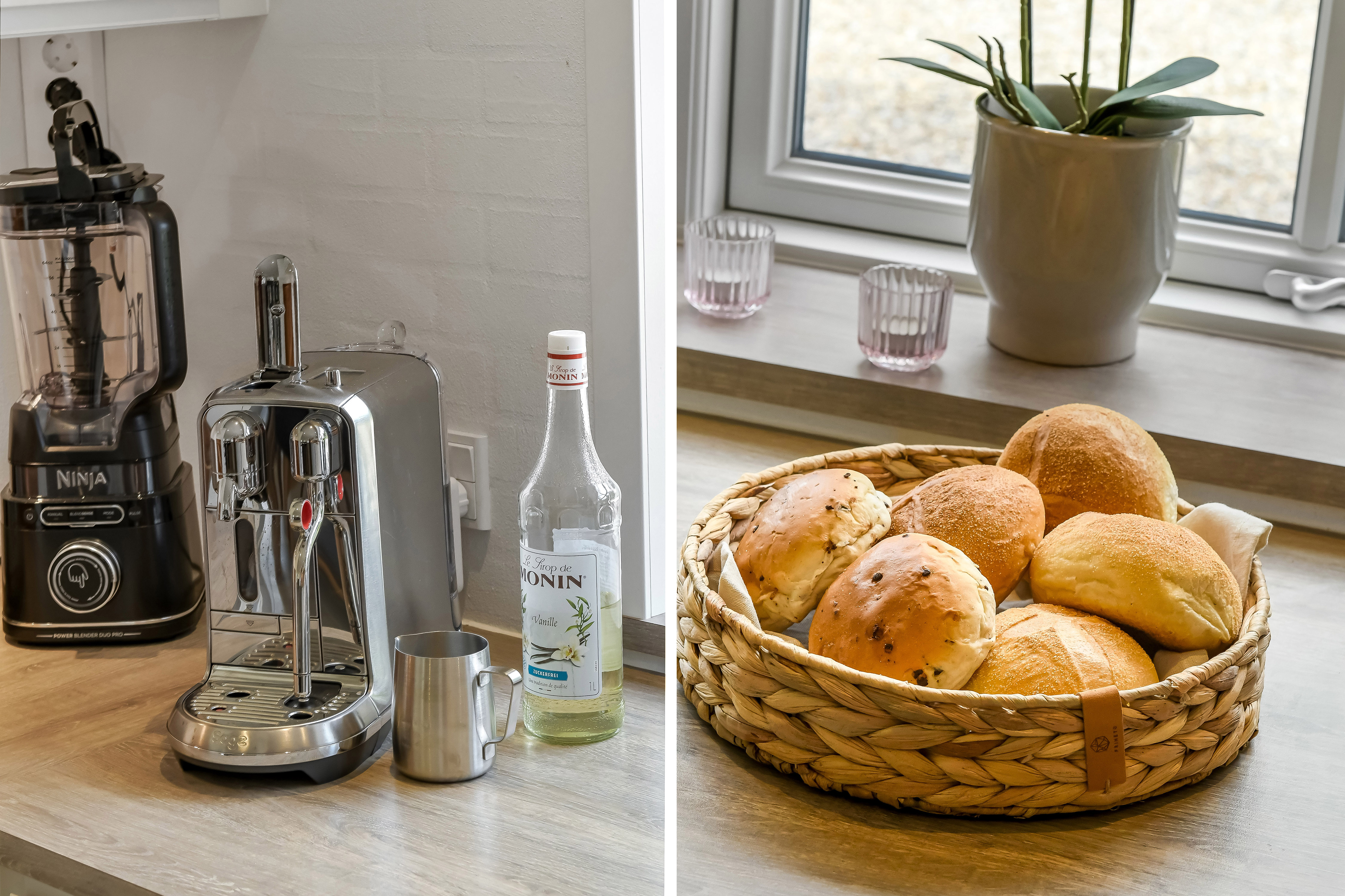 Küche mit Kaffee und frischen Brötchen